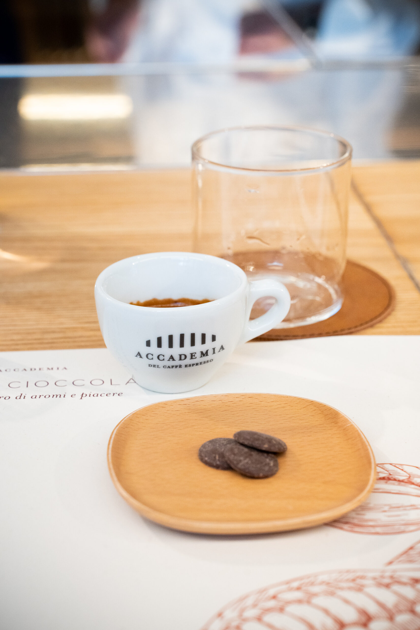 In mid May, Accademia del Caffè Espresso hosted an event with Chefs, Pastry Chefs, and representatives of Italian suppliers of high quality raw materials to culinary business, experimenting a new degustation format pairing Coffee & Chocolate (the latter supplied by Domori), and inviting about a dozen Michelin-starred chefs from around Tuscany.