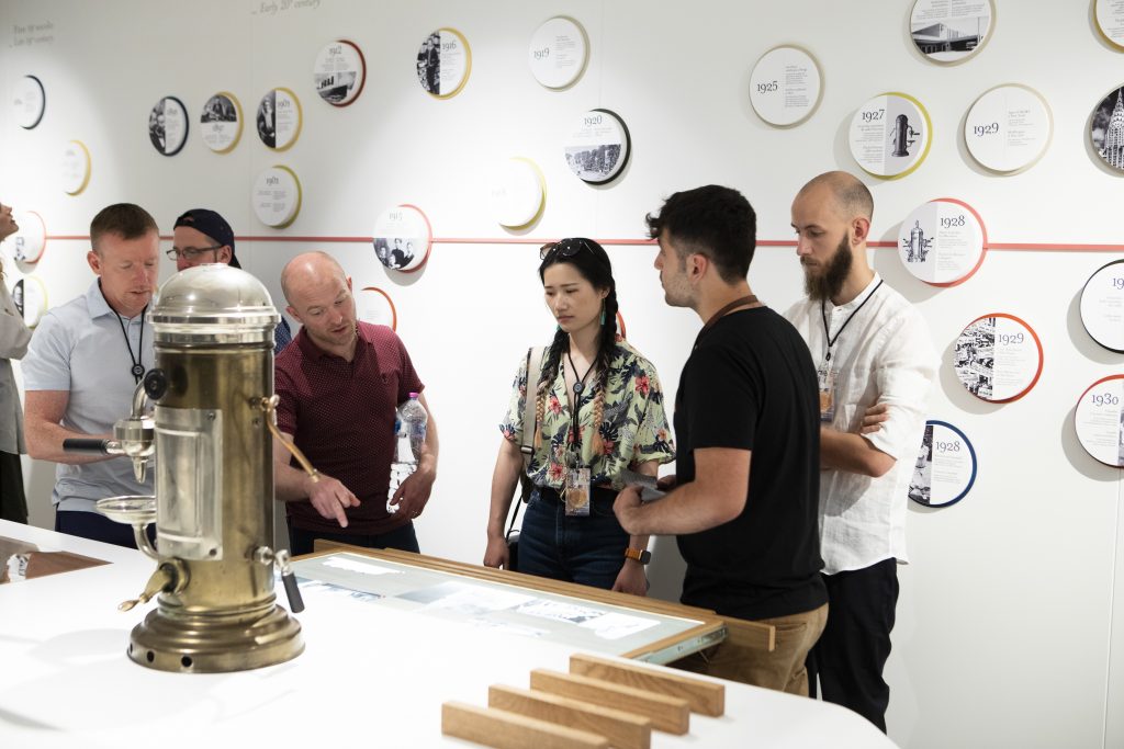 Start by traveling back in time by visiting a historical cafe serving a real 1970’s Italian espresso. Then depart for a journey through La Marzocco’s history and technology. End the tour with a visit to different origin countries around the world and see inside a real coffee plantation.