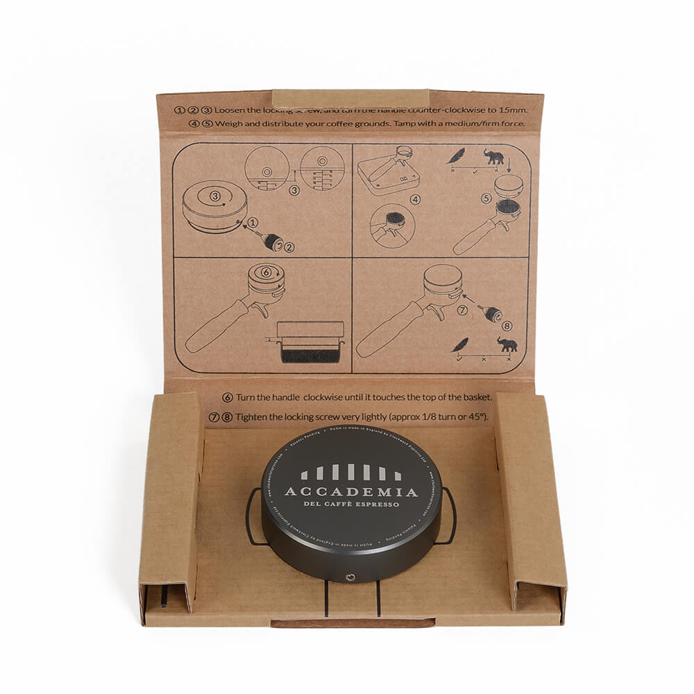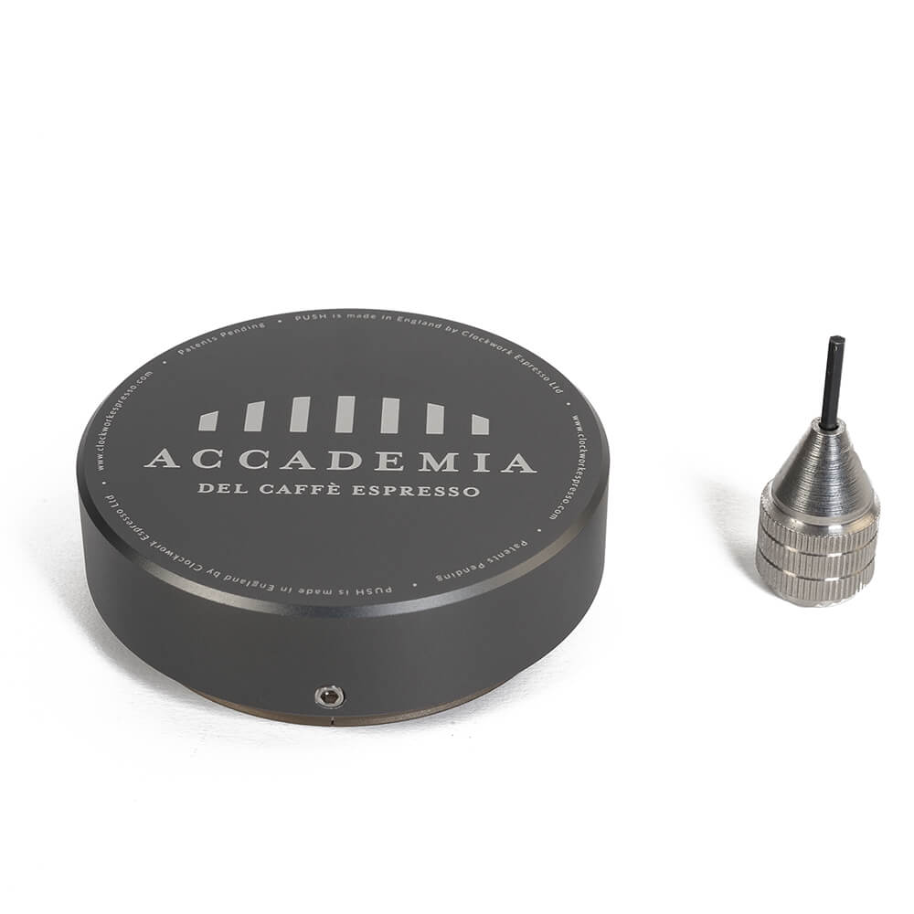 Disegnato e realizzato da Clockwork Espresso, il PUSH tamper assicura massima precisione e un’ergonomia senza pari. Grazie all’impugnatura piana, riduce il rischio di lesioni al polso.
