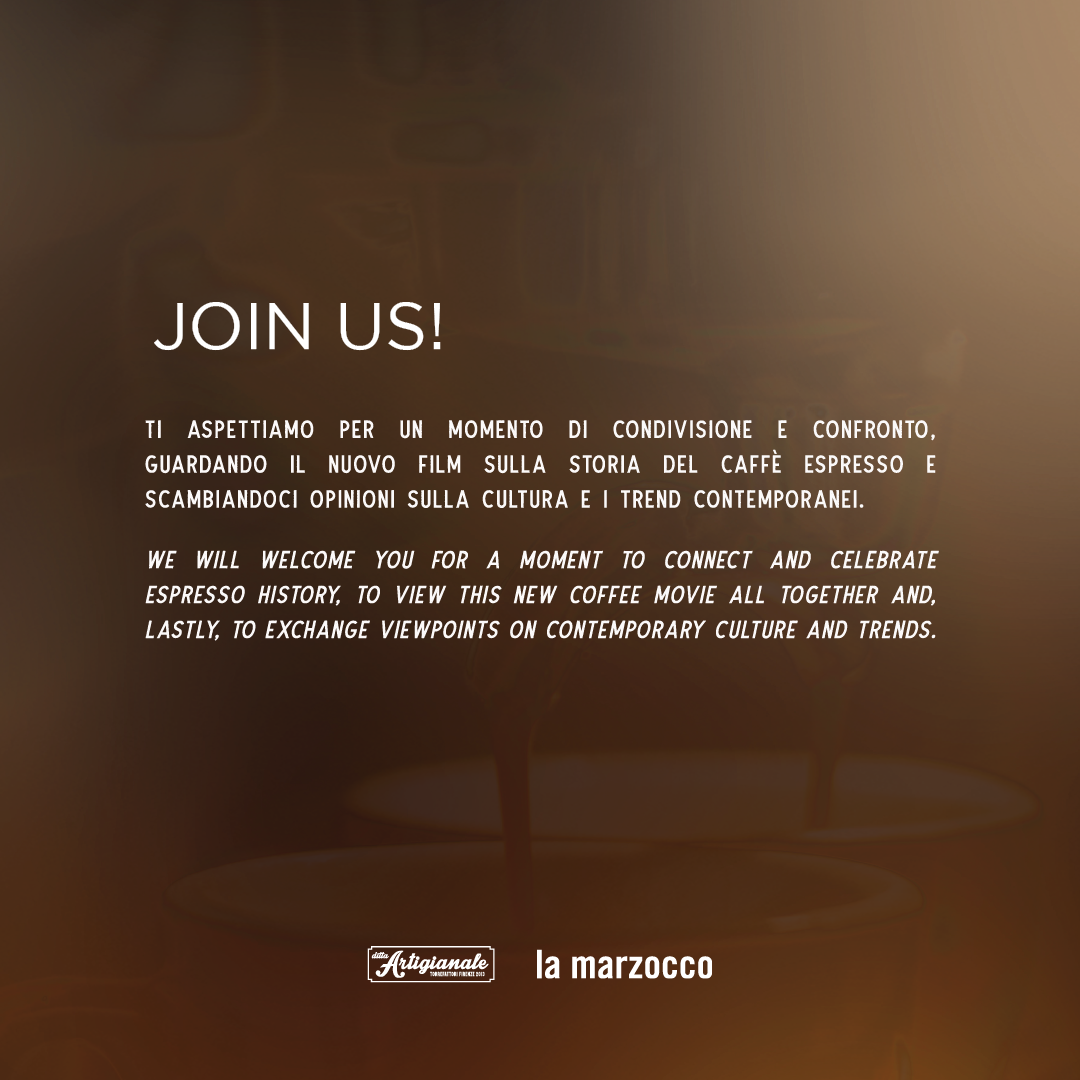 La proiezione sarà preceduta da un’Italian Coffee Breakfast all’insegna dello specialty coffee e della convivialità, offerta agli ospiti da Accademia del Caffè Espresso in collaborazione con Ditta Artigianale, il primo locale dedicato al coffee specialty in Italia.
